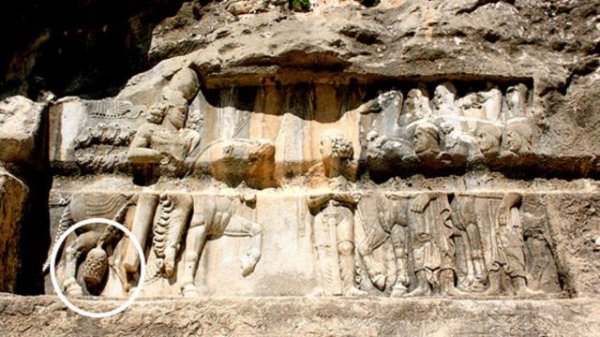 سارقین بخشی از سنگ نگاره (درون دایره) را در سودای یافتن گنج تخریب کردند